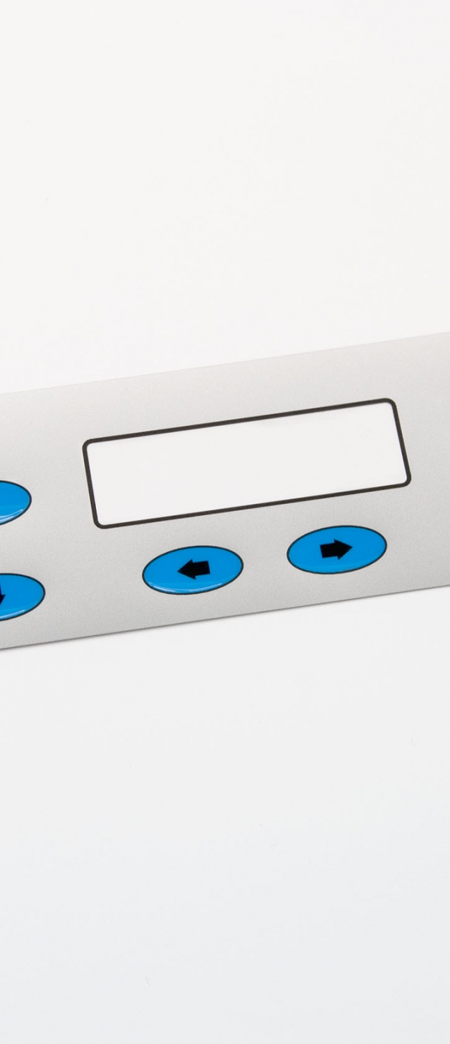 Jede auf Ihre Maschine zugeschnittene Frontfolie lässt sich auch mit einer Vielzahl von Funktionen perfekt in Ihr bestehendes Frontplattendesign integrieren. Egal, ob Sie sich für schlichte Displays, Touchscreens oder komplexe Bediensysteme entscheiden – wir produzieren eine optisch überzeugende Frontfolie, deren Funktionalität und Haltbarkeit Ihren Bedürfnissen gerecht wird.